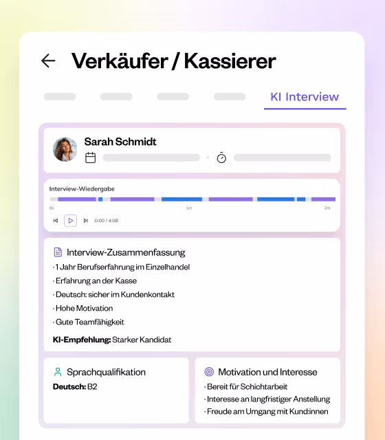 Schnellere Time-to-Hire, höhere Qualität, weniger Aufwand. Unternehmen besetzen Rollen in Minuten statt Wochen.