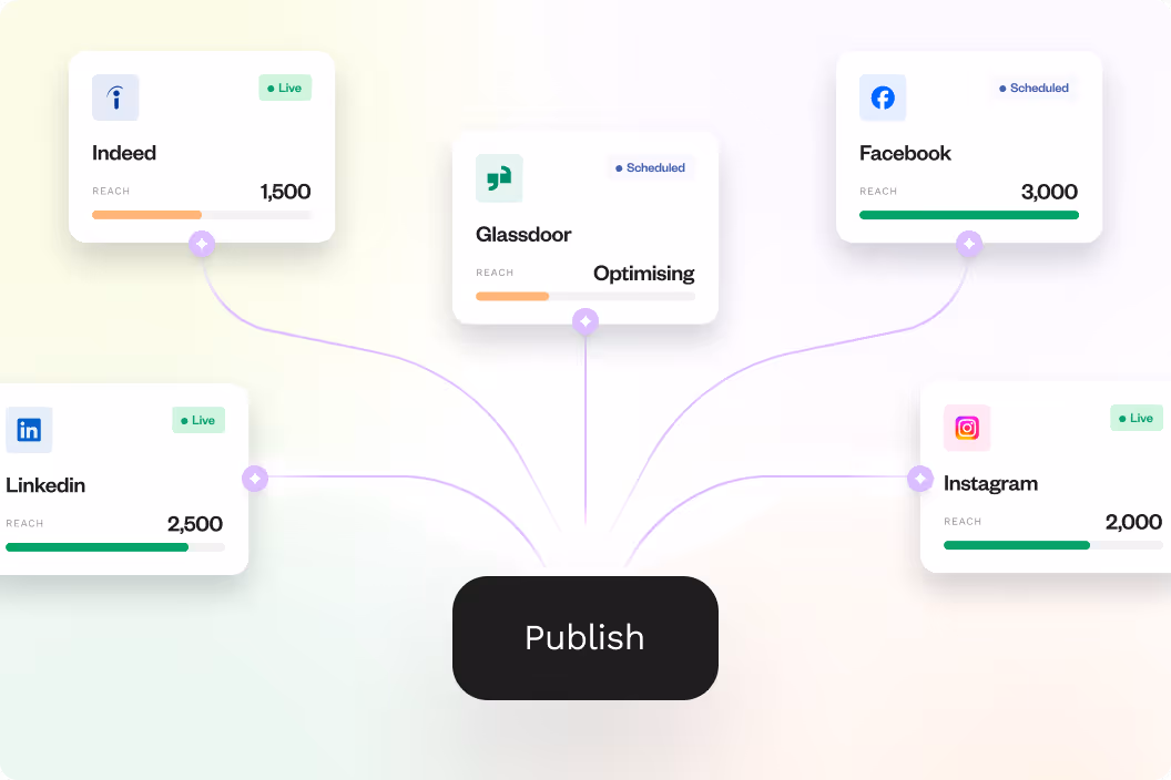 Paul posts simultaneously to LinkedIn, Glassdoor, Indeed, StepStone, social, and your careers page.