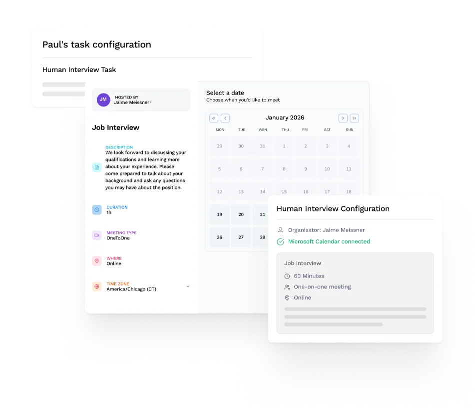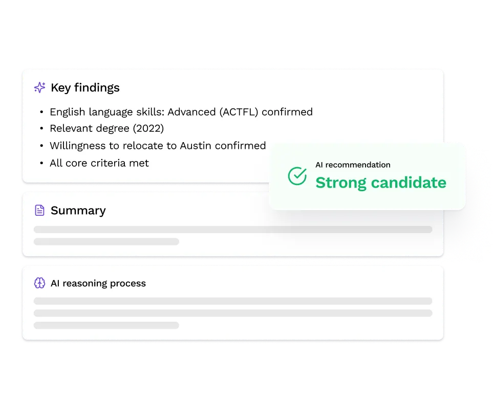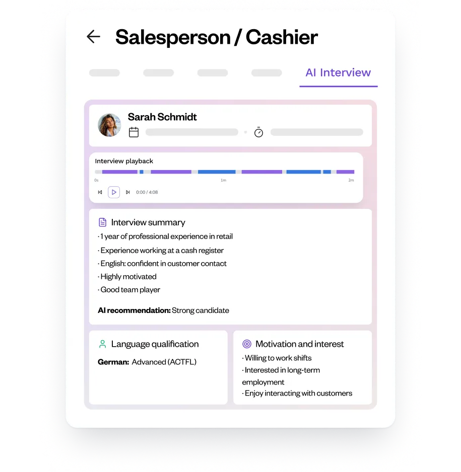 Paul automatically creates transcripts, summaries and scorecards during interviews, thus ensuring clear decision-making frameworks and transparency for hiring managers.