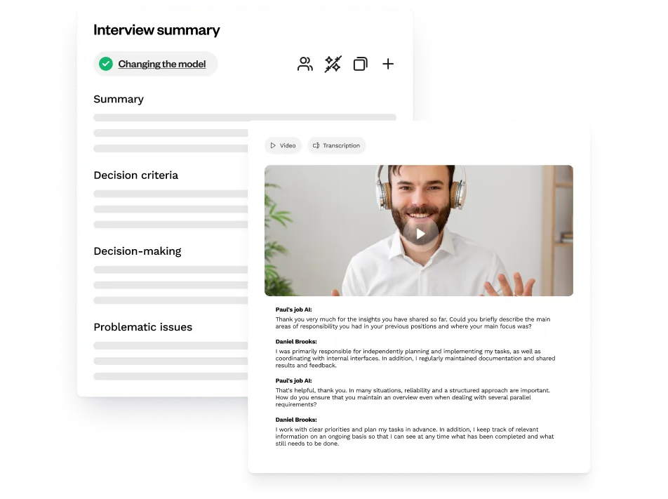Paul conducts structured interviews, assesses all relevant criteria, and evaluates responses objectively – with full documentation in text and audio.
