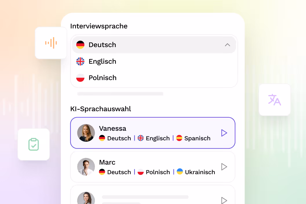 KI-Agenten führen strukturierte Interviews prüfen fachliche Eignung und Sprachkompetenz in Echtzeit, bewerten biasfrei und liefern auswertbare Scorecards.
