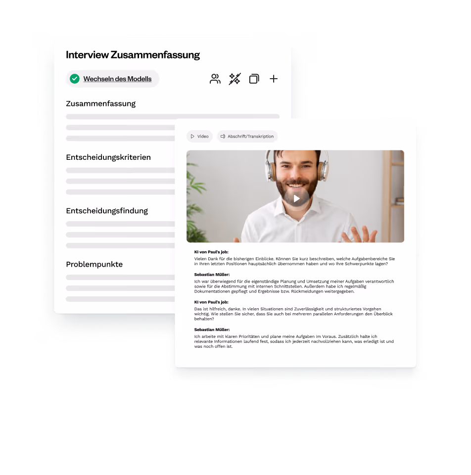 Paul erstellt während Interviews automatisch Mitschriften, Zusammenfassungen und Scorecards und sorgt so für klare Entscheidungsgrundlagen und Transparenz für Recruiting und Fachbereiche.